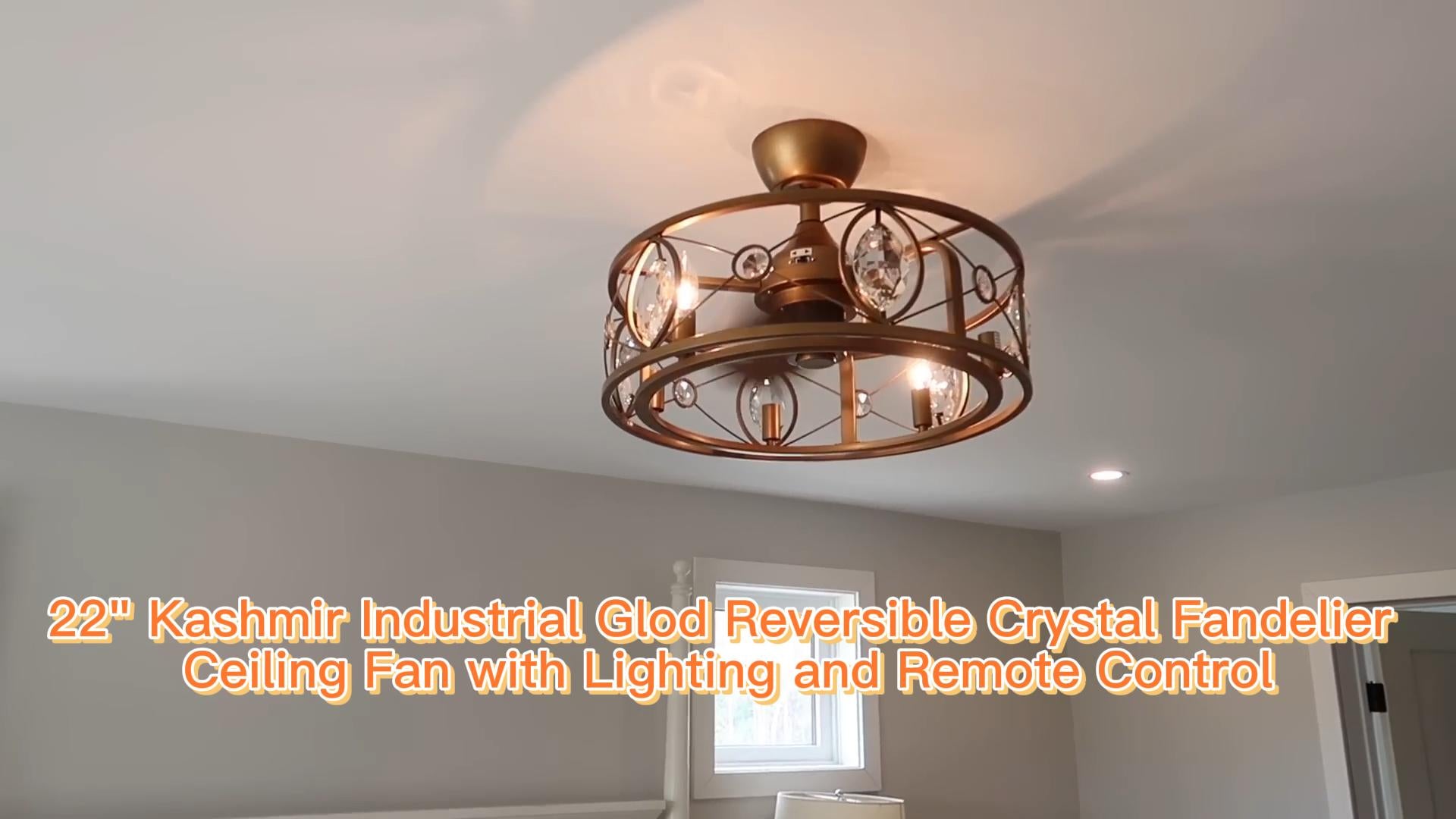 22" Kashmir Modern Glod Reversible Crystal Fandelier Ceiling Fan with Lighting and Remote Control