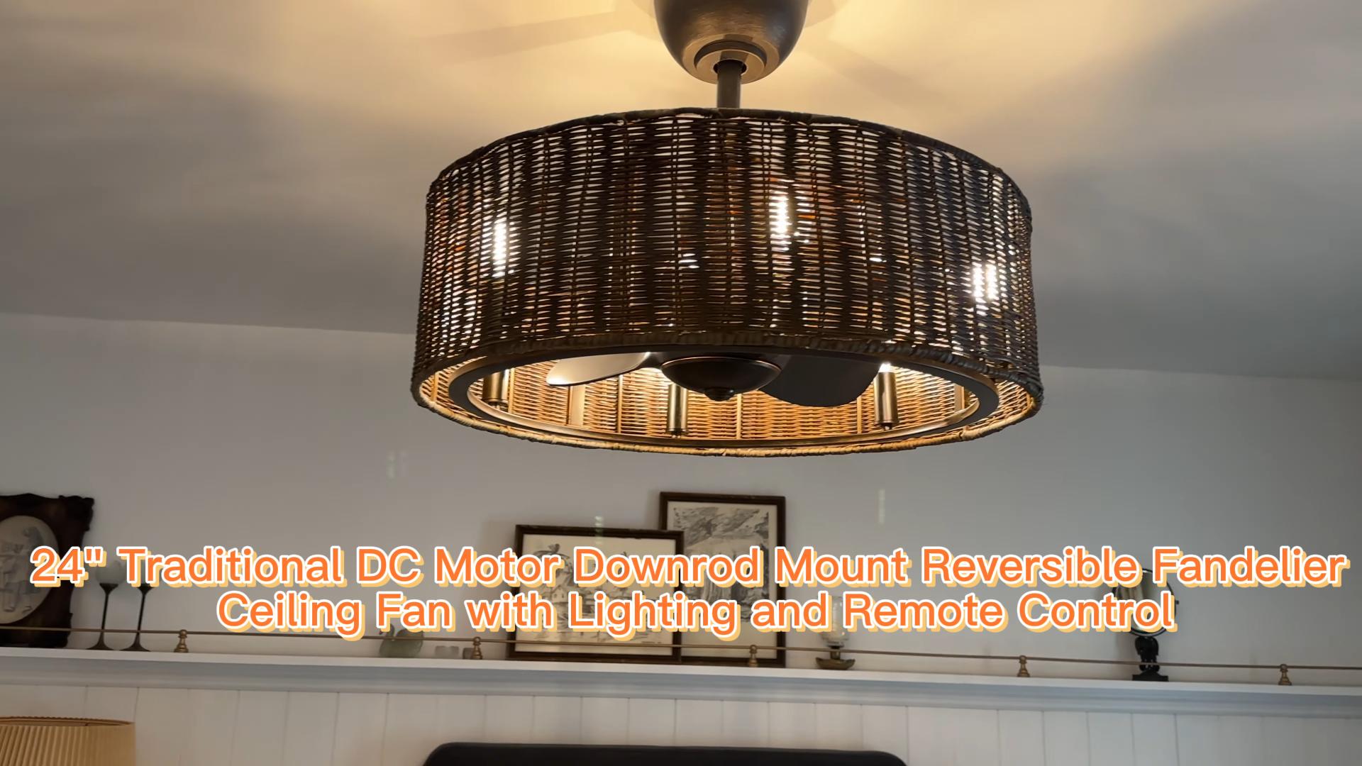 This whole body adopts two colors - antique Bronze and rattan color cage fan with special craftsmanship to show the ancient rattan texture.. This 24" fandelier ceiling fan features a cleverly decorated cage design. Equipped with six Edison bulbs (not included), ancient rattan-style fans provide ambient, elegant lighting.