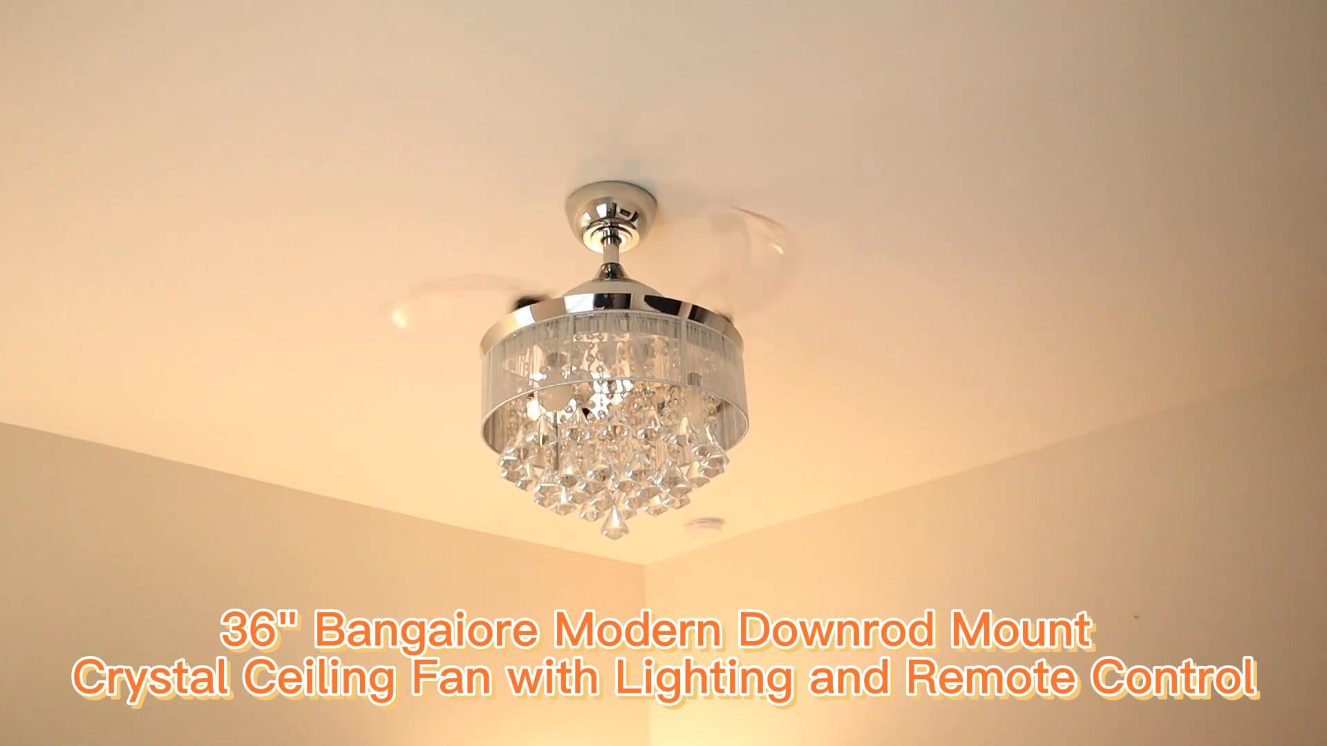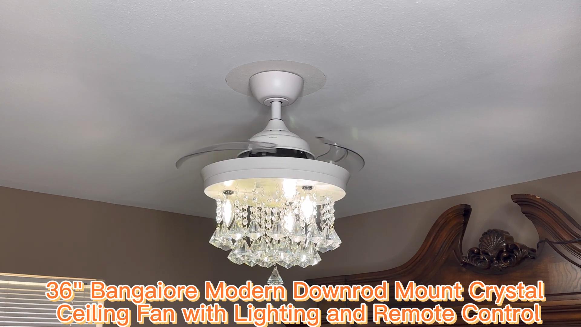 36" Bangaiore Modern Downrod Mount Crystal Ceiling Fan with Lighting and Remote Control