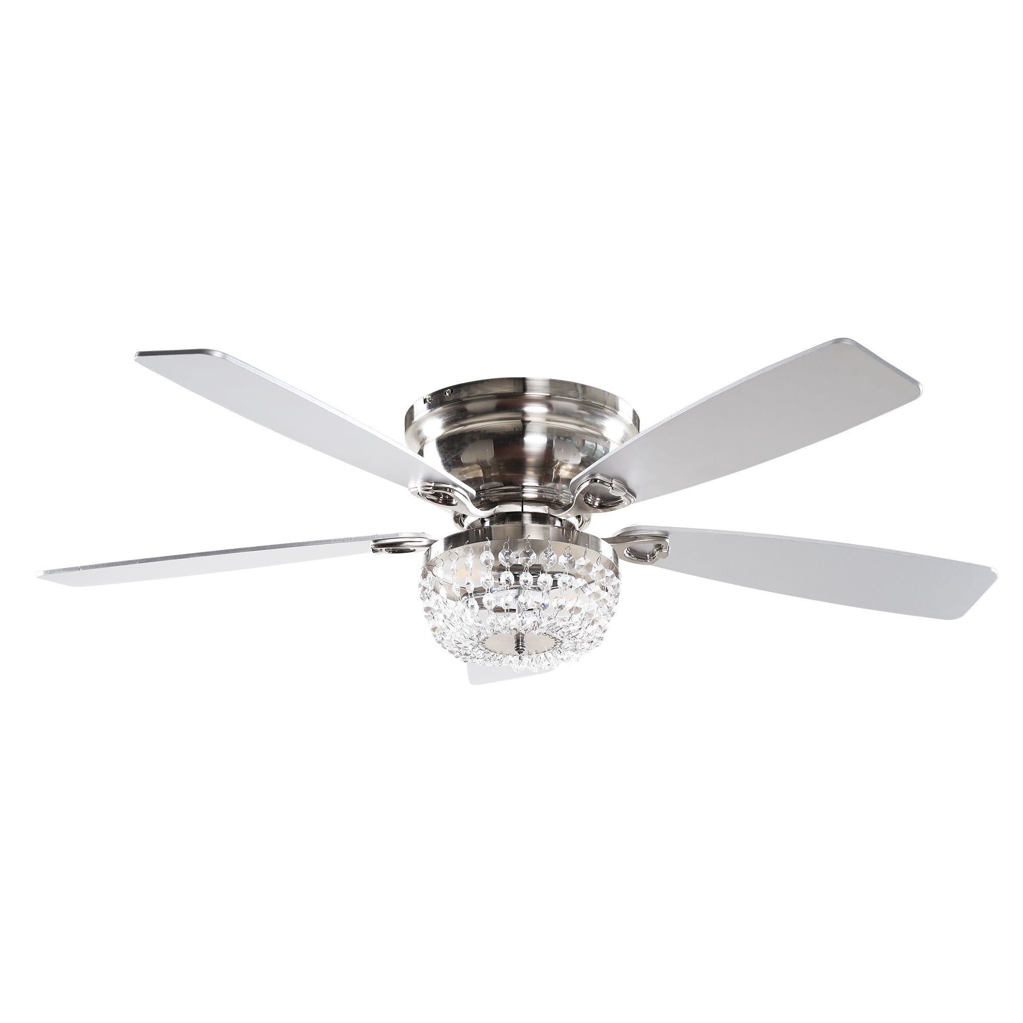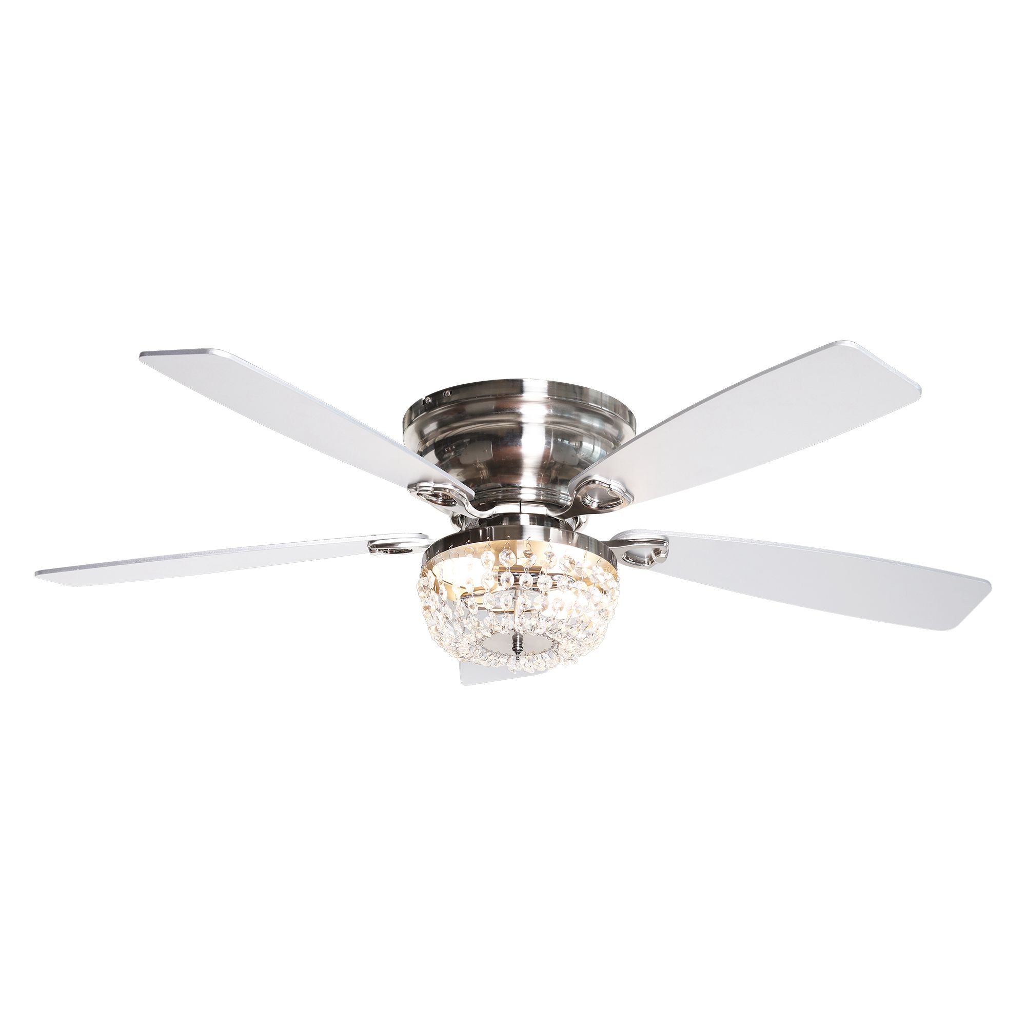 48" Modern Flush Mount Reversible Crytsal Ceiling Fan with Lighting and Remote Control